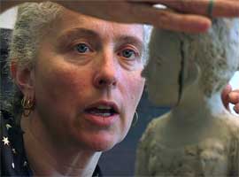 Release Date: January 10th, 2007 (Film Forum) Agnes Martin is directed by Mary Lance. Kiki Smith is directed by Vivien Bittencourt and Vincent Katz. BASIC PREMISE: Two documentaries, one about Agnes Martin, a reclusive painter and another about artist Kiki Smith who prepares for 8-room exhibit at the Renaissance palace in Venice. ENTERTAINMENT VALUE: Both Agnes Martin: With My Back to the World and Kiki Smith: Squatting the Palace provide a brief glimpse into the mind of an artist. Agnes Martin, at a running time of 57 minutes, succeeds the most with more interviews rather than merely showing the artist at work. Director Mary Lance follows 90- year-old Agnes Martin, who died in 2004, as she paints her seemly simple, geometric paintings. Agnes accurately measures all of the proportions onto a detailed blue print before painting. In a fascinating part of the interview, Agnes states that painting allows her to shun everything else in the world and create her own reality based on her imagination. She claims to wait for something that inspires her to paint onto a large canvas, but it’s not quite clear what specifically inspires her. More information about why she decided to spend her life in solitude would have been interesting as well as how she struggles to make ends meet. Kiki Smith: Squatting the Palace, at a running time of 45 minutes, is, primarily, a behind-the-scenes look at how Kiki Smith and her assistants prepare for a 8-room exhibit displaying her creative talent for designing furniture, creating sculptures and drawing. Kiki is clearly a collaborative, more outgoing artist unlike Agnes who prefers to work alone. Kiki claims that the exhibit allows her demonstrate her passion for domestic art where every room expresses her artistic tastes. Co-directors Vivien Bittencourt and Vincent Katz should have included more interviews to make the film more engaging and it would have been helpful for Kiki to explain her relationship with her assistants and how she selected them in the first place. Of these two documentaries, Agnes Martin is the more interesting and memorable one. SPIRITUAL VALUE: Whether in seclusion, like Agnes Martin, or in collaboration, like Kiki Smith, artists have their own method which they use to express themselves. Artists not only need to find inspirations to work, but also spend a lot of time meticulously planning and designing each artwork. When they finish working, some, like Agnes, relax while they wait for their next inspiration which is difficult to predict. It’s quite inspiring to watch Agnes and Kiki do what they love and love what they do. INSULT TO YOUR INTELLIGENCE: Not enough interviews with Kiki in Kiki Smith: Squatting the Palace. NUMBER OF TIMES I CHECKED MY WATCH: 3 IN A NUTSHELL: Mildly fascinating and somewhat inspirational, but not profound or provocative enough. RECOMMENDED WAY TO WATCH: DVD Main Page Alphabetical Menu Chronological Menu The "A" Menu ______________________________________________________ |