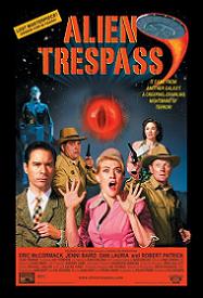 In 1957, a flyinf saucer crashes into the mountainside within the small town of Mojave, California, as the townspeople observe a beautiful meteor shower. Ted Lewis (Eric McCormack), a scientist/teacher, notices the crash, arrives at the site first and, when he enters the saucer, it snatches him up. When he’s dropped back into town, his body has now been taken over by an alien named Urp. His wife, Lana (Jody Thompson), doesn’t quite understand why he’s acting so strange, especially given that he refers to himself in the third person, so, naturally, she assumes that he’s mentally ill. Meanwhile, a creature, Ghota (Jovan Nenadic), terrorizes the town by eating people and leaving behind only a puddle for each victim. Vernon Watson (Robert Patrick), the town sheriff investigates the strange, supernatural events while the police chief, Dawson (Dan Lauria), reacts skeptically when he hears about them. In an amusing subplot, Urp hitches a ride in a car belonging to Tammy (Jenni Baird), a diner waitress, and their interactions are quite funny in an offbeat sort of way, such as when Urp gets his first sensation of physical attraction to her. The screenplay by Steven P. Fisher pokes a lot of fun at the Sci-fi genre with lots of tongue-in-cheek humor and campiness. It takes a while to become accustomed to the awkwardly campy performances, though, and the silly dialogue, similar to what you’d find in 2001’s The Lost Skeleton of Cadavra or the brilliant, underrated musical/sci-fi/western The American Astronaut . Director R.W. Goodwin includes very cheap special effects, a well-chosen musical score and stylish cinematography as well as a brisk enough pace all which gives you the intended feeling of watching a cheesy B-movie. If you’re willing to check your brain at the door and to suspend a lot of your disbelief, Alien Trespass manages to be a delightfully zany and campy satire best experienced at midnight with a group of friends. Number of times I checked my watch: 2. Released by Roadside Attractions.