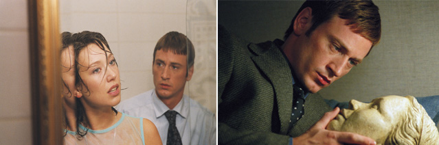 Release Date: August 4th, 2006 (Angelika Film Center) by First Run Features. The Cast: Benoît Magimel, Laura Smet, Aurore Clément, Bernard Le Coq, Solène Bouton, Anna Mihalcea, Michel Duchaussoy, Suzanne Flon, Eric Seigne, Pierre-François Dumeniaud. Directed by Claude Chabrol. In French with subtitles. BASIC PREMISE: Mysterious events occur when Philippe (Magimel) falls in love with his sister’s bridesmaid, Segma (Smet). ENTERTAINMENT VALUE: The Bridesmaid has an intricate plot that remains engaging throughout, but gradually diminishes in tension and suspense. The first act just sets up the characters that become more important to the plot later on. Philippe goes with his mother (Clément) to the house of Gerard (Le Coq), her lover, in order to give him a strange gift: a sculpted head a.k.a. a bust. Without notice, Gerard moves out of his house but not before Philippe tracks him down and steals the bust. At his sister’s wedding, Philippe meets a bridesmaid whose name was once Stephanie, but now it’s Segma. They instantly fall in love which is precisely the point when things turn for the worst. Segma asks him to kill another person by stating four actions that make you a complete person: planting a tree, writing a poem, having sex with somebody of your own gender, and killing someone. She asks him if he would kill to show her how much he loves her. Will he do it? Will he become just as crazy as she is? For that matter, is she telling the truth regarding anything in her past? These questions get explored in the second act, but only the last question has the most surprises while the rest feel a little too predictable and unimaginative. With all the pent-up tension and strange occurrences, the conventional third act falls apart with predictability and awkward scenes. On a positive note, both Benoît Magimel and Laura Smet give very convincing performances. If only the second and third acts weren’t so messy and underwhelming. Fortunately, co-writer/director Claude Chabrol includes great cinematography with an appropriate musical score which helps to give an eerie atmosphere as if something dark is about to happen. SPIRITUAL VALUE: None is required or desired. INSULT TO YOUR INTELLIGENCE: A messy second and third act with diminishing suspense. NUMBER OF TIMES I CHECKED MY WATCH: 3 IN A NUTSHELL: An intricate plot with diminishing suspense, but strong performances and superbly directed by Claude Chabrol help to keep you awake. RECOMMENDED WAY TO WATCH: VHS/DVD Main Page Alphabetical Menu The "B" Menu ______________________________________________________ |