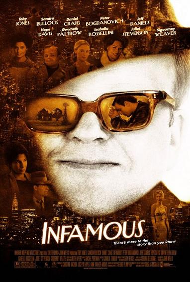 Release Date: October 13th, 2006 by Warner Independent Pictures. The Cast: Toby Jones, Sandra Bullock, Daniel Craig, Sigourney Weaver, Hope Davis, Isabella Rossellini, Peter Bogdanovich, Gwyneth Paltrow, Lee Pace, John Benjamin Hickey, Juliet Stevenson. Directed by Douglas McGrath. BASIC PREMISE: Truman Capote (Jones) bonds with convicted murderers Perry Smith (Craig) and Dick Hickock (Pace) while doing investigative research for his book In Cold Blood. ENTERTAINMENT VALUE: For those who have seen last year’s Capote, Infamous will be familiar territory with no surprises. Toby Jones gives a decent performance as Truman Capote. Everything from the way he talks, his gestures, and his witty retorts makes him seem like more of comedian rather than an investigative journalist working for the New Yorker. When the plot focuses on the relationship between Truman and Perry, it’s much more engaging and believable, especially thanks to Daniel Craig’s terrific performance as a convicted murderer with a heart. However, the plot gets a bit messy, contrived and awkward with party scenes in New York with his many upper-class friends (Weaver, Davis, Rossellini, Paltrow) and other a hilarious scene when he spends Christmas with a detective (Daniels) and his family in Kansas. Sandra Bullock seems miscast as Harper Lee, an author and a good friend of his. Writer/director Douglas McGrath includes distracting scenes when Lee and other friends talk to the screen about their relationship with Truman, as if being interviewed. McGrath’s unfocused awkwardly combines comedy with drama and not enough suspense. Ultimately, Infamous feels underwhelming and only mildly engaging. SPIRITUAL VALUE: Unfortunately, none. INSULT TO YOUR INTELLIGENCE: Often unfocused and contrived. NUMBER OF TIMES I CHECKED MY WATCH: 4 IN A NUTSHELL: Mildly engaging with a mostly decent ensemble cast, but often unfocused, contrived and underwhelming. RECOMMENDED WAY TO WATCH: VHS/DVD Main Page Alphabetical Menu Chronological Menu The "I" Menu ______________________________________________________ |