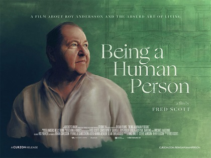 Being a Human Person, directed by Fred Scott, is both a documentary about Swedish filmmaker Roy Andersson and "making-of" behind-the-scenes of his latest film, About Endlessness. Candid interviews with Andersson show his intelligence, charisma and his vulnerability. He's brilliant, sensitive, funny, fragile and strong all at once. In other words, he's human. The fact that he's unafraid to discuss his thoughts and feelings so openly in front of the camera and to talk about his struggles with alcoholism adds some emotional depth that avoids turning the doc into a hagiography. Some of the insights into how he shoots his scenes, all in one studio, are fascinating, i.e. when he creates an illusion by using a small cut-out to make a background look real and larger than size. It would help to be familiar with Andersson's work prior to watching this doc, but if you're not, it will only make you curious about it. If you're already familiar with his work, Being a Human Person will only make you appreciate it. Either way, you'll appreciate Andersson's humanity even more and perhaps even understand it a little better. The very appropriately-titled Being a Human Person opens at Film Forum along with a sidebar of some of his films.