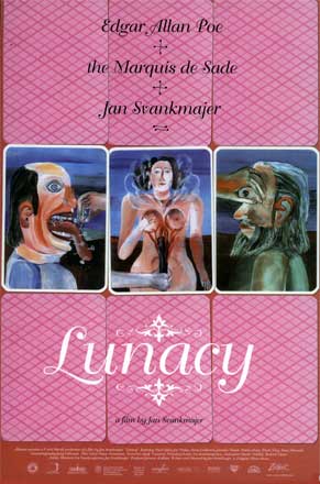 Release Date: June 9th, 2006 (Film Forum) by Zeitgeist Films. The Cast: Pavel Liska, Jan Triska, Anna Geislerová, Jaroslav Dusek, Martin Huba, Pavel Nový, Stano Danciak, Jirí Krytinár, Jan Svankmajer. Directed by Jan Svankmajer. In Czech with subtitles. BASIC PREMISE: Jean (Liska), an asylum patient, befriends the Marquis (Triska) which leads him to discover a dark secret about the asylum. ENTERTAINMENT VALUE: Combining horror, comedy, drama and absurdity has rarely been so much fun. Just like writer/director Jan Svankmajer’s last movie, Little Otik, Lunacy has a thin plot that gets increasingly absurd as it progresses. In the first scene, the director comes onscreen to preface the film to somewhat prepare you for what you’re about to see. He appropriately informs you that this film will be “an infantile tribute to Edgar Allan Poe”. Jan Triska gives a terrifically stylized performance in the complex role of the sadistic Marquis who allows the asylum patients run amok throughout the asylum. Many scenes will disgust the average moviegoer, especially vegetarians. Without giving away too much of the surprises, there are plenty of animate—yes, animate— body organs and raw meat peppered in between scenes including tongues, eyeballs and brains. Much of the humor is dark, sick and just plain twisted—especially during a bizarre orgy scene. What makes Lunacy so engaging to watch though is that every scene is richly textured with lively visuals, even in the background. Had director Svankmajer used a more conventional approach to directing this film, it would have been boring, predictable and dull. Fortunately, not a single bizarre scene drags from start to finish. SPIRITUAL VALUE: To add to the bizarreness, Lunacy actually has a depressing yet thought-provoking commentary about modern life. Basically, it suggests that there are two basic forms of mental institutions: one where the patients have freedom and one where they must abide by strict rules. Then, there’s also a third form which combines the worst aspects of the two: modern life. INSULT TO YOUR INTELLIGENCE: None, as long as you suspend your disbelief. NUMBER OF TIMES I CHECKED MY WATCH: 0 IN A NUTSHELL: A celebration of life at its craziest form. Profoundly absurd and visually delightful. A guilty pleasure. RECOMMENDED WAY TO WATCH: Movie Theater (1st Run) Main Page Alphabetical Menu The "L" Menu ______________________________________________________ |
