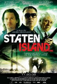 Parmie Tarzo (Vincent D’Onofrio), a mob boss, wants to take complete control over the entire mob in Staten Island. After the Russian mafia betrays him and he luckily survives an assassination attempt against him, he goes into the woods that’s about to go through deforestation, climbs onto a tree and sits on top of a treehouse. The police and media soon arrive to try to persuade him to come down, but he refuses and claims that he’s protesting against deforestation. Jasper Sabiano (Seymour Cassel), a deaf-mute deli worker, secretly works for Parmie cutting off body parts of deceased mob victims in a backroom of the deli. In the final subplot, Sully (Ethan Hawke), works a shitty job, literally, as a septic tank cleaner, and lives with his wife, Mary (Julianne Nicholson), who insists that he repeatedly take showers to remove any disgusting odors. He ends up fearing for his life after he breaks into Parmie’s house and steals $50,000 from a safe in order to pay for an experimental in-vitro procedure that would make their unborn baby more intelligent. Each of the three subplots unfolds nonlinearly with Parmie, Jasper and Sully eventually ending up together at the same time in the deli. Writer/director James DeMonaco takes a standard concept about people getting into trouble with the mob in one way or another, and, essentially, invigorates the concept with dark, offbeat humor and very interesting characters. How often do you get to watch a film where a mafia boss turns into a crazy, environmental activist? The opening scene, which won’t be spoiled here, is quite an amusing and refreshingly original way to begin the film. DeMonaco deftly blends drama, action, tragedy, suspense and dark comedy in a way that’s never dull, awkward or over-the-top. The intricate plot could have easily turned into a convoluted mess, but, thanks to a tight, intelligent screenplay, it remains focused, easy-to-follow and engaging throughout. Moreover, DeMonaco should be commended for not using shaky camerawork as a means to generate tension, especially during the gritty action sequences. At a running time of 1 hour and 35 minutes, Staten Island manages to be an invigorating, lively and captivating crime drama boasting a terrific cast, sharp dialogue and just the right amount of dark comic relief. Number of times I checked my watch: 1 Released by National Entertainment Media. Opens at the Village East Cinema.
