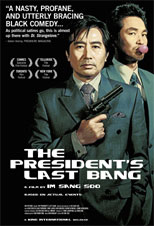 Release Date: October 14th, 2005 (NYC-ImaginAsian and Cinema Village) by Kino International. The Cast: Song Jae-ho, Han Suk-kyu, Baek Yun-shik, Jeong Won-jung, Jo Sang-geon, Kim Sang-ho, Kwun Byung-gil. Directed by Im Sang-soo. In Japanese and Korean with subtitles. BASIC PREMISE: In 1979, the Korean Central Intelligence Agency (KCIA) plans an assassination on President Park Chunghee. Loosely based on a true story. ENTERTAINMENT VALUE: This stylish assassination film takes a while to get going, but once the assassination gradually takes place, it becomes more stylish in a violent way—very much like Kill Bill. The two members of the KCIA who plan his assassination are chief secretary (Byung-gil) and bodyguard (Won-jung). The first half of the film is mostly drama with a little dark comedy mixed in. There is an obvious sense that everything will lead to a chaotic, bloody scene. Director Im Sang-soo is not afraid to show a lot of blood and guts---splattered on the wall and spilling onto the floor. Despite all of this violence, there is still plenty to be entertained by, especially if you like very dark humor. It is funny how the KCIA forgets about two girls on an upper-level floor who hear all of the gunshots. In another scene, as a chef is about to be killed, he begs for his life by promising to make better food. Fortunately, this film never truly takes itself seriously, which is precisely what makes it so much fun! SPIRITUAL VALUE: None is required or desired. INSULT TO YOUR INTELLIGENCE: None. NUMBER OF TIMES I CHECKED MY WATCH: 1 THE BOTTOM LINE: A darkly humorous and extremely violent film—Kill Bill-style! It’s a true guilty pleasure! RECOMMENDED WAY TO WATCH: Those with a weak stomach- VHS/DVD Everyone else- Movie Theater (1st Run) Main Page Alphabetical Menu The "P" Menu ______________________________________________________ |